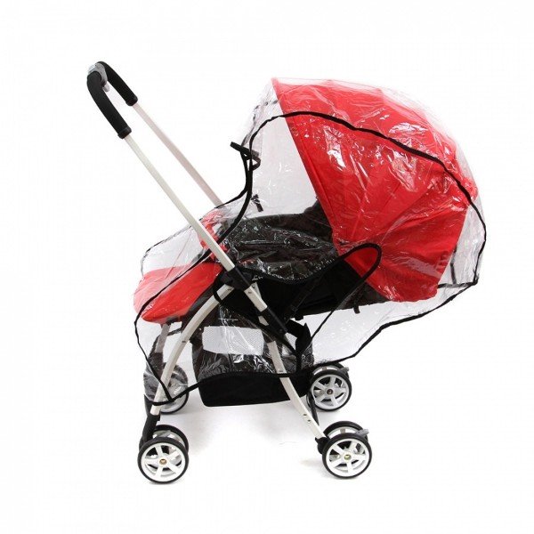 Прозрачный, прочный дождевик для прогулочной коляски с перекидной ручкой.