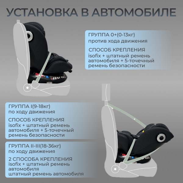 - ISOFIX + штатный ремень автомобиля