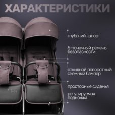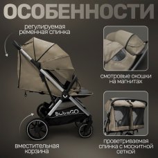 Детская прогулочная коляска для двойни Bubago Duo X лунный бежевый