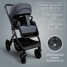 Коляска модульная BubaGO Niveta 3в1 серая