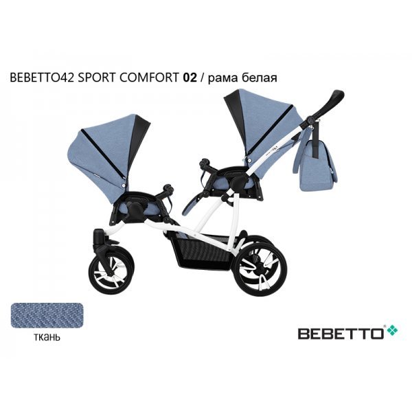 Bebetto42 Sport Comfort для двойни прогулочная – универсальная, маневренная и легко управляемая прогулочная коляска для двойни. Среди широко представленного на нашем рынке ассортимента колясок для двойни, данную модель выделяют такие качества как комфорт, прочность и отличная амортизация. Уникальная конструкция Bebetto42 Sport Comfort позволяет располагать прогулочные блоки в четырех положениях: лицом к маме, лицом от мамы, в противоположных направлениях и в одном направлении. Посадочные места коляски организованы «паровозиком», что позволяет без труда подняться с коляской по пандусу, завезти ее в пассажирский лифт и пройти в любые дверные проемы.