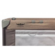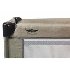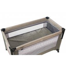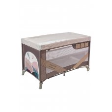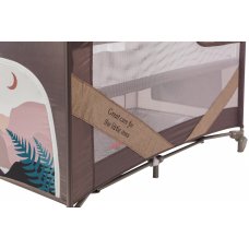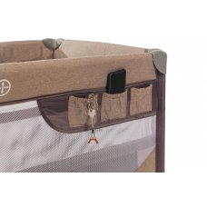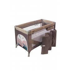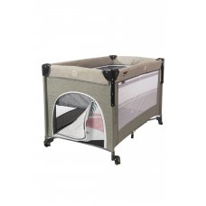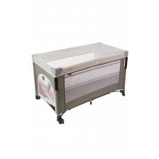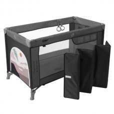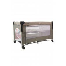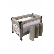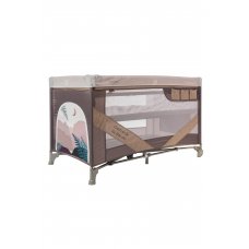 Манеж-кровать, в котором есть дополнительное место для сна. Такой манеж имеет несколько уровней высоты, в нём малыш может спать и играть. В комплекте есть столик с ремнём безопасности для пеленания малютки.