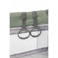 Манеж-кровать оборудован колёсиками с тормозами, и съёмными полозьями для укачивания, т.е. служить как люлька. Его можно использовать с самого рождения малыша.