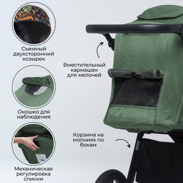 С этой проходимой и легко управляемой коляской, оснащенной комфортным сиденьем и регулируемой спинкой, включая полноценное горизонтальное положение, каждая прогулка с малышом станет приятным и комфортным времяпрепровождением.