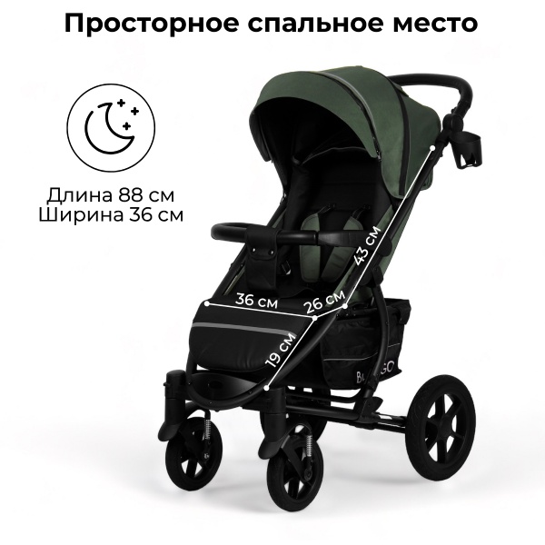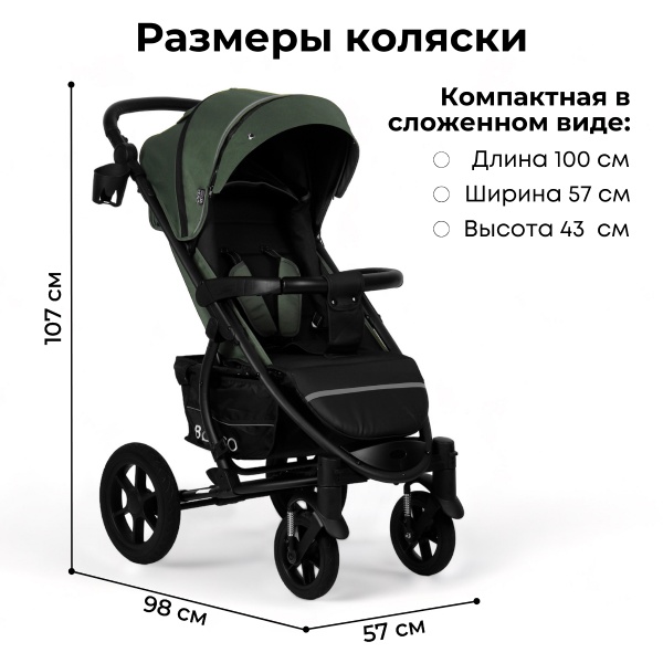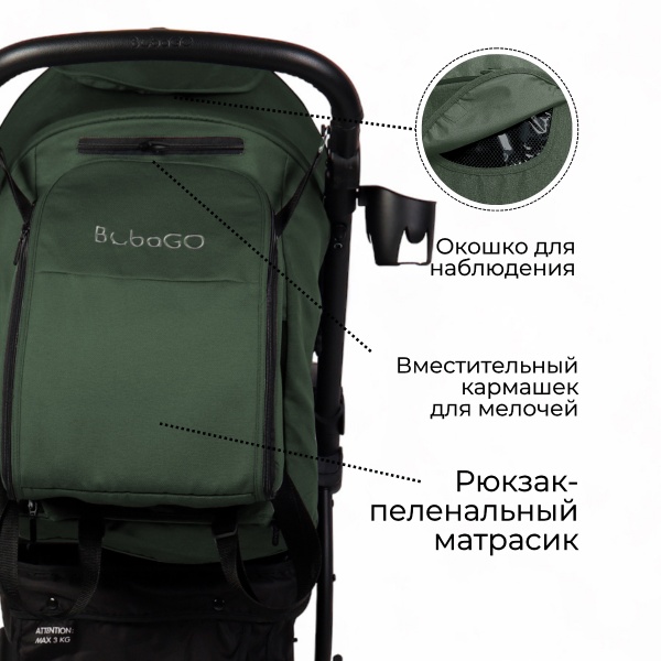 Bubago Model One с максимально большими колёсами (19 см передние и 27 см задние), имеет прочную и устойчивую конструкцию. Текстурированная водоотталкивающая ткань 600D. И максимальная комплектация.