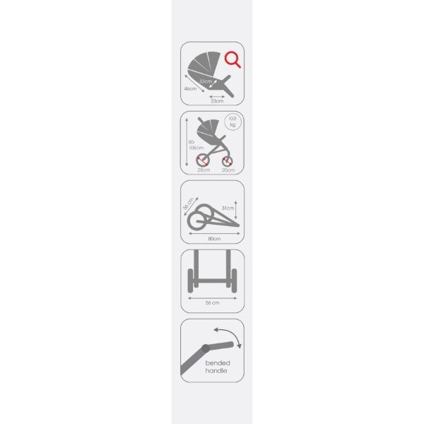Важной характеристикой также является многопозиционное бесшумное опускание спинки в положение лежа. Удобный карман для необходимых мелочей, накидка на ножки, регулировка ручки и подножка, 5-ти точечные ремни безопасности и ограничитель для ног, барьерка, объемная корзина для покупок и центральный тормоз — важные детали, которые облегчают уход за ребенком на прогулках и в длительных путешествиях.