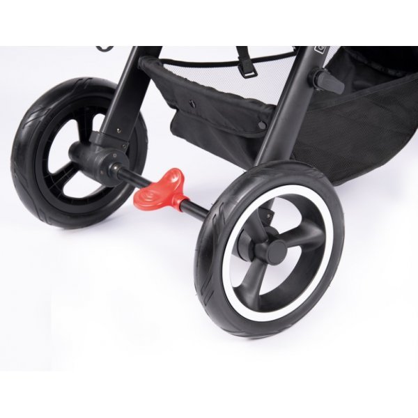 Мягкость и плавность езды обеспечивают надувные колеса, передние поворотные с блокировкой для езды прямо.
