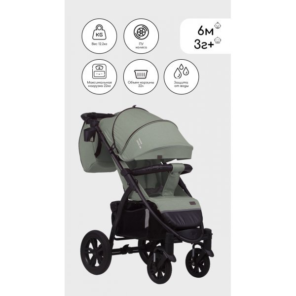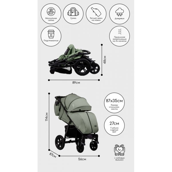 У Bubago CROSS AIR большие гелевые, обеспечивающие мягкий и плавный ход колеса, большой регулируемый капюшон, просторное спальное место и хорошая амортизация на каждом колесе сделают прогулки с ней максимально комфортными в любое время года и по любой местности.