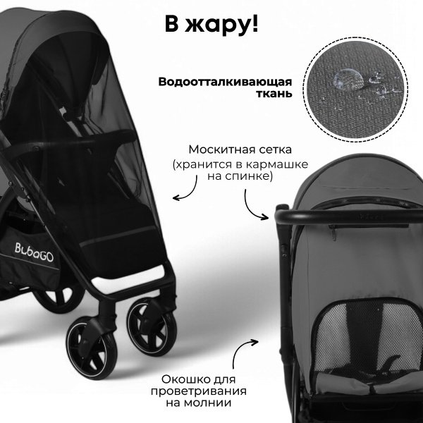 У Bubago Cross CITY большие EVA колеса, обеспечивающие мягкий и плавный ход, большой регулируемый капюшон, просторное спальное место и хорошая амортизация на каждом колесе сделают прогулки с ней максимально комфортными в любое время года и по любой местности.