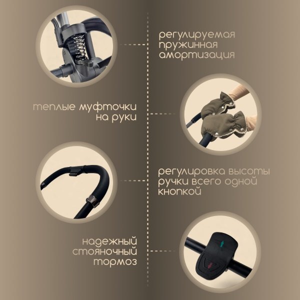 - Управление коляской возможно одной рукой — идеальный баланс манёвренности и устойчивости.
