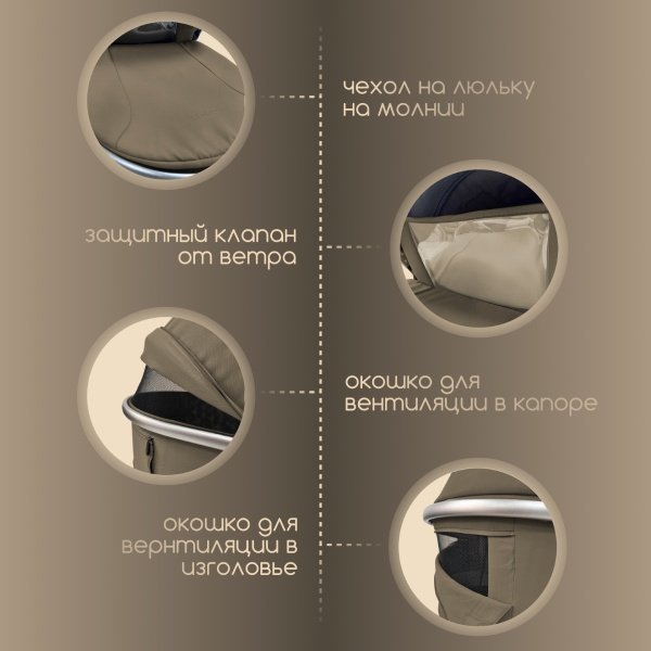 - Москитная секция в капоре и силиконовое смотровое окошко на магните обеспечивают циркуляцию воздуха и удобный контроль за ребёнком.