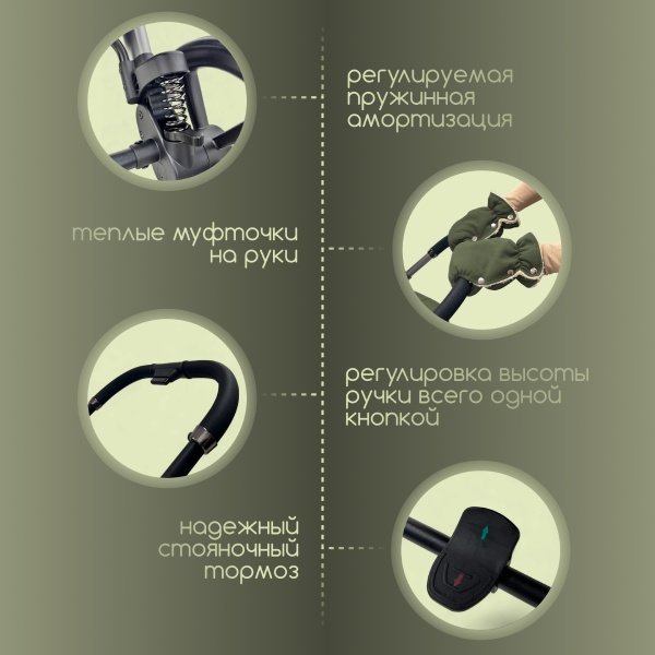 - Управление коляской возможно одной рукой — идеальный баланс манёвренности и устойчивости.