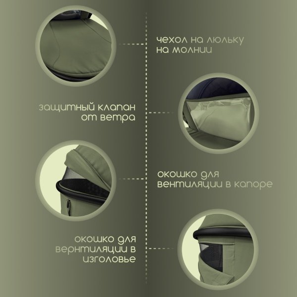 - Москитная секция в капоре и силиконовое смотровое окошко на магните обеспечивают циркуляцию воздуха и удобный контроль за ребёнком.