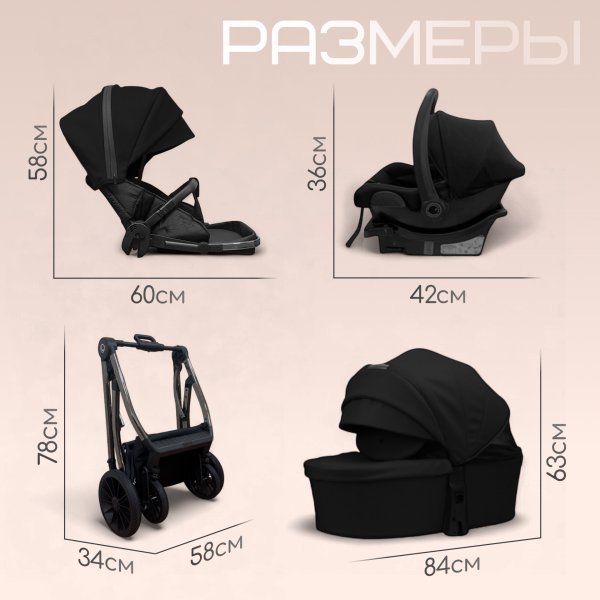 - Регулировка спинки на прогулочном блоке: 3 положения до горизонтального