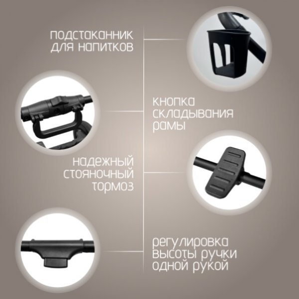 Телескопическая ручка регулируется по высоте и подходит для родителей любого роста.