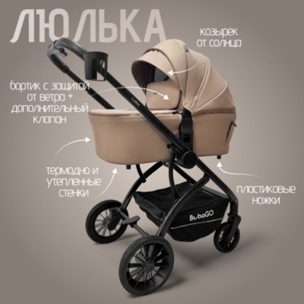 BubaGO Lotta Thermo — это универсальная модульная коляска 3 в 1 для комфортных прогулок в любое время года. Надёжная рама, продуманные блоки и обновлённые материалы делают модель практичным решением как для межсезонья и зимы, так и для тёплого периода.