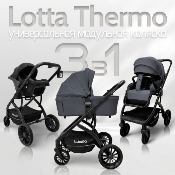 BubaGO Lotta Thermo — это универсальная модульная коляска 3 в 1 для комфортных прогулок в любое время года. Надёжная рама, продуманные блоки и обновлённые материалы делают модель практичным решением как для межсезонья и зимы, так и для тёплого периода.