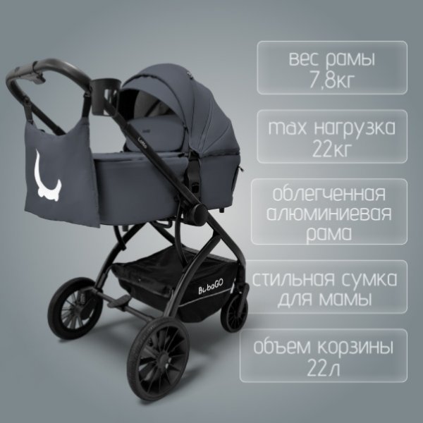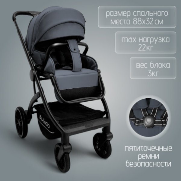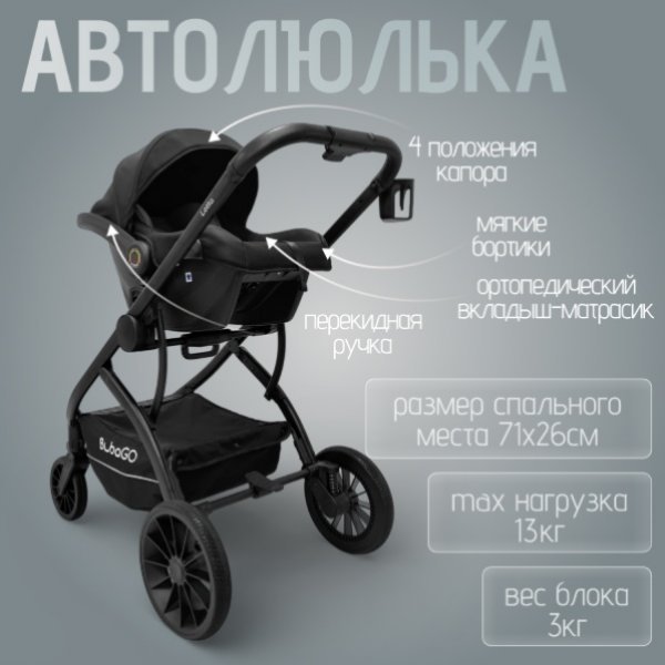 Коляска комплектуется автолюлькой BubaGO с адаптерами для установки на шасси.