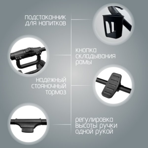 Телескопическая ручка регулируется по высоте и подходит для родителей любого роста.