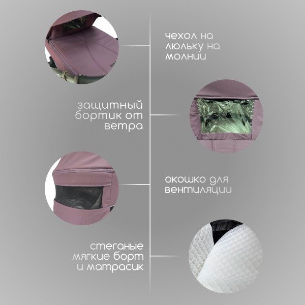 • Максимальная комплектация: теплые чехлы на ножки, москитная сетка и дождевик, стильный рюкзак для мамы с кожаными вставками.