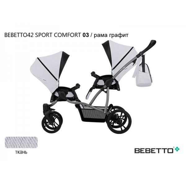Bebetto42 Sport Comfort для двойни прогулочная – универсальная, маневренная и легко управляемая прогулочная коляска для двойни. Среди широко представленного на нашем рынке ассортимента колясок для двойни, данную модель выделяют такие качества как комфорт, прочность и отличная амортизация. Уникальная конструкция Bebetto42 Sport Comfort позволяет располагать прогулочные блоки в четырех положениях: лицом к маме, лицом от мамы, в противоположных направлениях и в одном направлении. Посадочные места коляски организованы «паровозиком», что позволяет без труда подняться с коляской по пандусу, завезти ее в пассажирский лифт и пройти в любые дверные проемы.