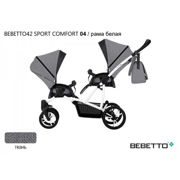 Bebetto42 Sport Comfort для двойни прогулочная – универсальная, маневренная и легко управляемая прогулочная коляска для двойни. Среди широко представленного на нашем рынке ассортимента колясок для двойни, данную модель выделяют такие качества как комфорт, прочность и отличная амортизация. Уникальная конструкция Bebetto42 Sport Comfort позволяет располагать прогулочные блоки в четырех положениях: лицом к маме, лицом от мамы, в противоположных направлениях и в одном направлении. Посадочные места коляски организованы «паровозиком», что позволяет без труда подняться с коляской по пандусу, завезти ее в пассажирский лифт и пройти в любые дверные проемы.