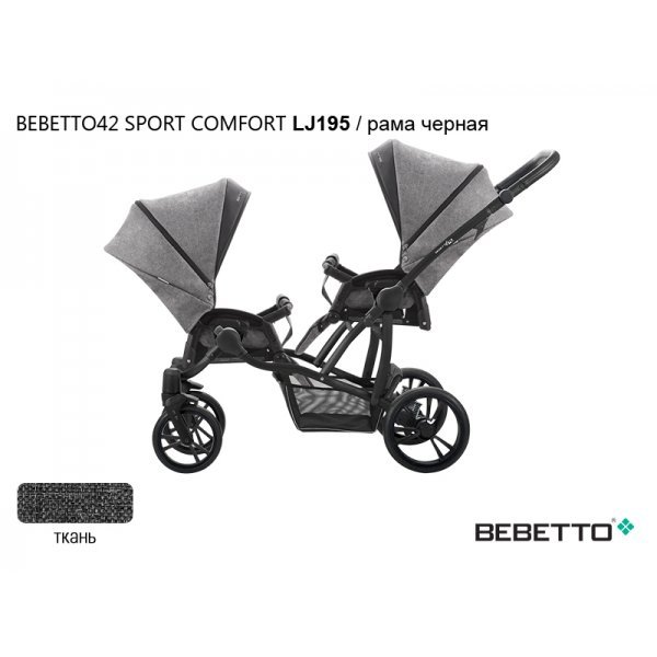 Bebetto42 Sport Comfort для двойни прогулочная – универсальная, маневренная и легко управляемая прогулочная коляска для двойни. Среди широко представленного на нашем рынке ассортимента колясок для двойни, данную модель выделяют такие качества как комфорт, прочность и отличная амортизация. Уникальная конструкция Bebetto42 Sport Comfort позволяет располагать прогулочные блоки в четырех положениях: лицом к маме, лицом от мамы, в противоположных направлениях и в одном направлении. Посадочные места коляски организованы «паровозиком», что позволяет без труда подняться с коляской по пандусу, завезти ее в пассажирский лифт и пройти в любые дверные проемы.