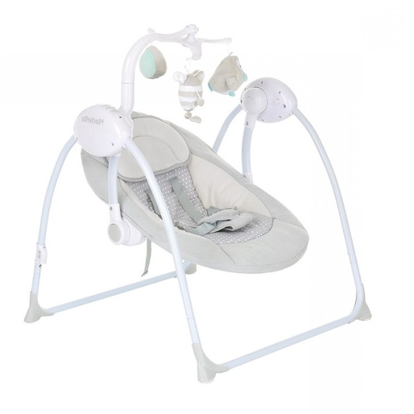 Электрокачели Pituso Marbella имеют удобное сидение с регулируемой по наклону спинкой и поддержкой для головы. Совершенно бесшумное качание позволит ребенку без проблем заснуть. 5-ти точечный