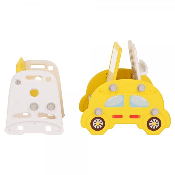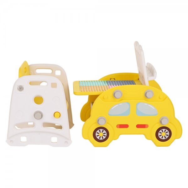 Из набора можно собрать – стульчик для кормления, столик для конструирования или доску для рисования, стеллаж для хранения детских книжек, стульчик и горку для катания ребенка.