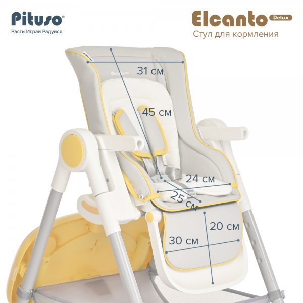 PITUSO ELCANTO DELUX - современный стульчик для кормления детей в возрасте от 6 месяцев до 3 лет. Он регулируется по высоте, имеет подставку для ног и съемный столик, что позволяет расти вместе с ребенком. Чехол стул... Читать далее...