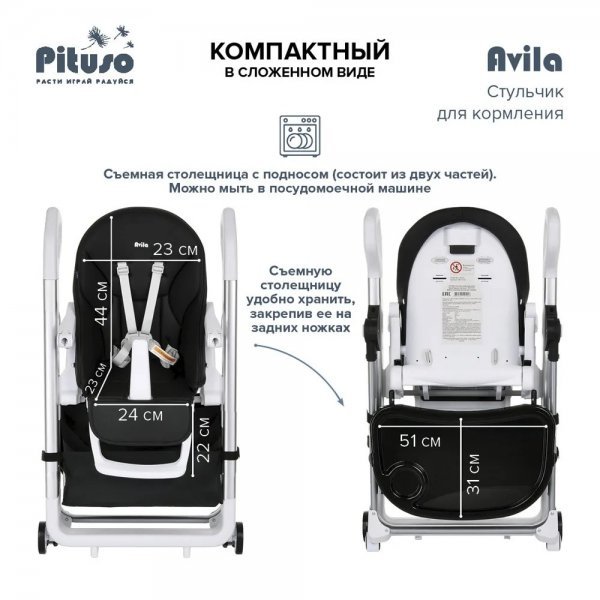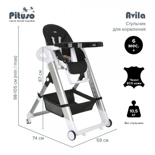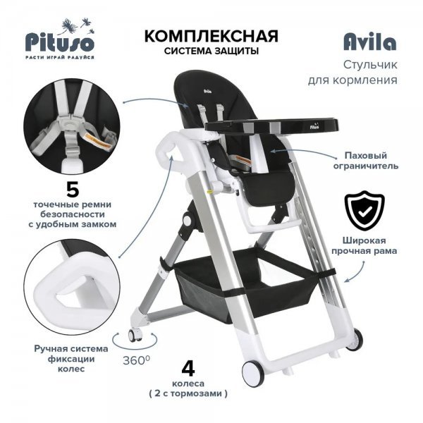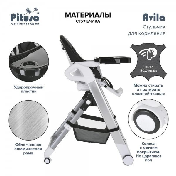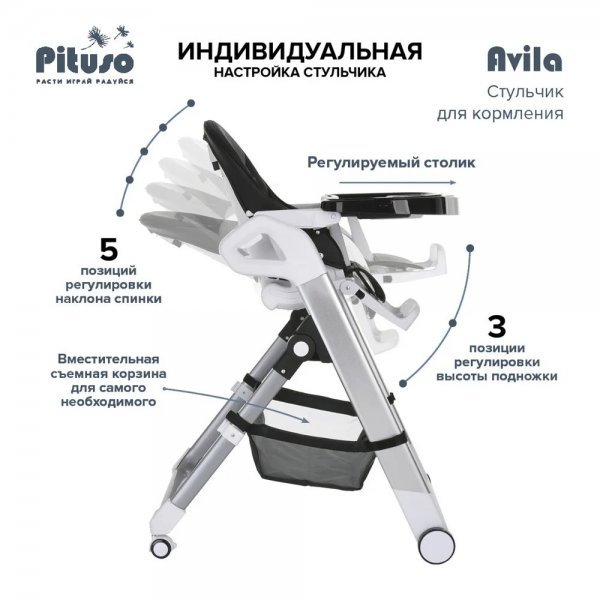 Детский стульчик для кормления Pituso Avila – сочетает в себе стильный дизайн и удобство в использование, делает уход за ребенком комфортным и безопасным.