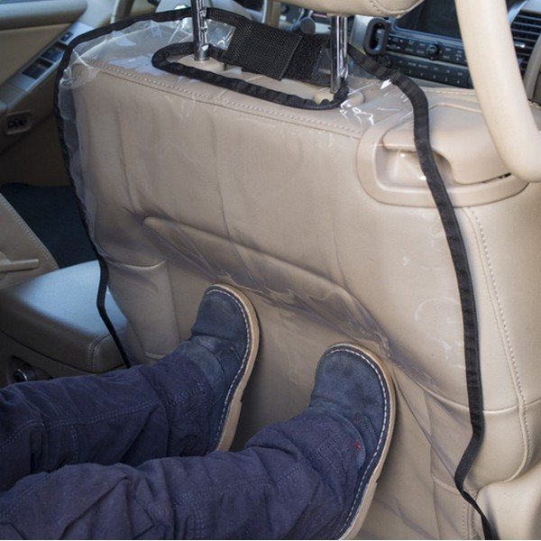 Легко крепится на подголовник застежкой-липучкой, снизу дополнительно фиксируется липучкой (идет в комплекте). Изготовлена из плотного прозрачного полиэтилена. Размер: 46х67 см.