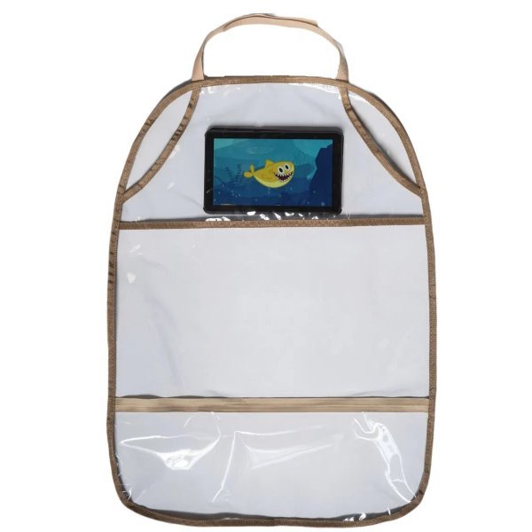 Защита с карманом под планшет с бежевой окантовкой изготовлена из пленки 200мкм. Крепится сверху на липучке, внизу на неразъемной резинке 20мм. Планшетом можно управлять через плёнку. размеры: высота 47см, ширина 47см.... Читать далее...